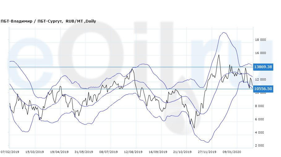 Разница цен между ПБТ на базисе Владимир и ПБТ на базисе Сургут (Ханты-Мансийский а.о.).