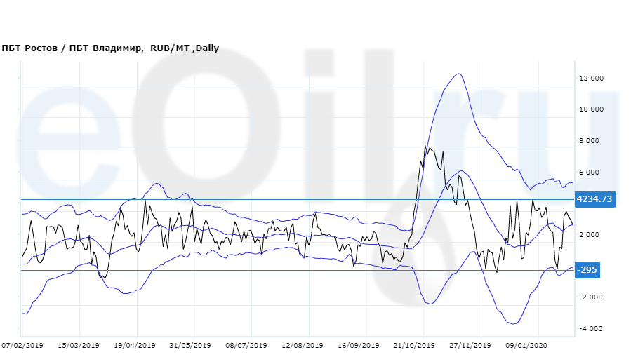 Разница цен между ПБТ на базисе Ростов и ПБТ на базисе Владимир.