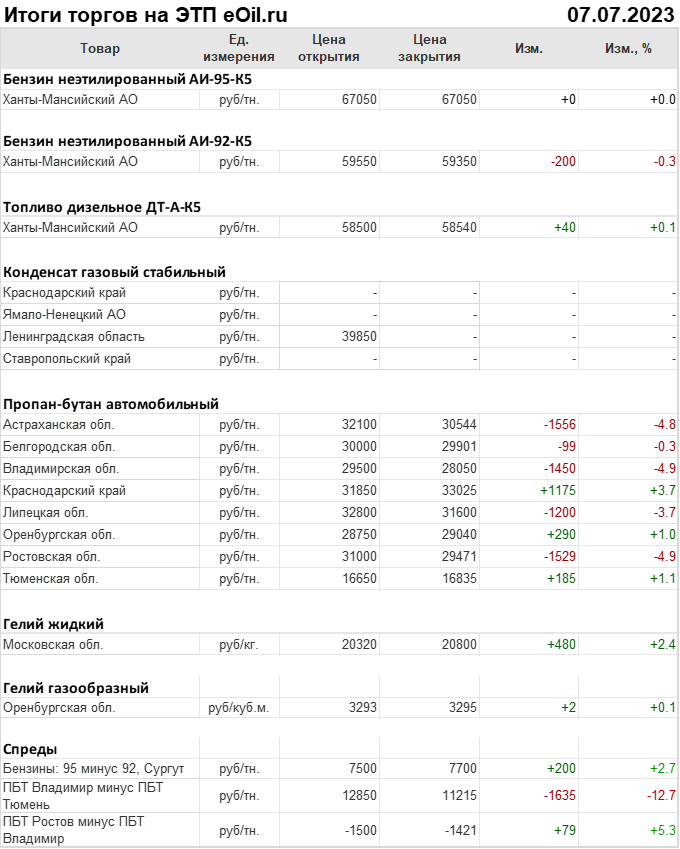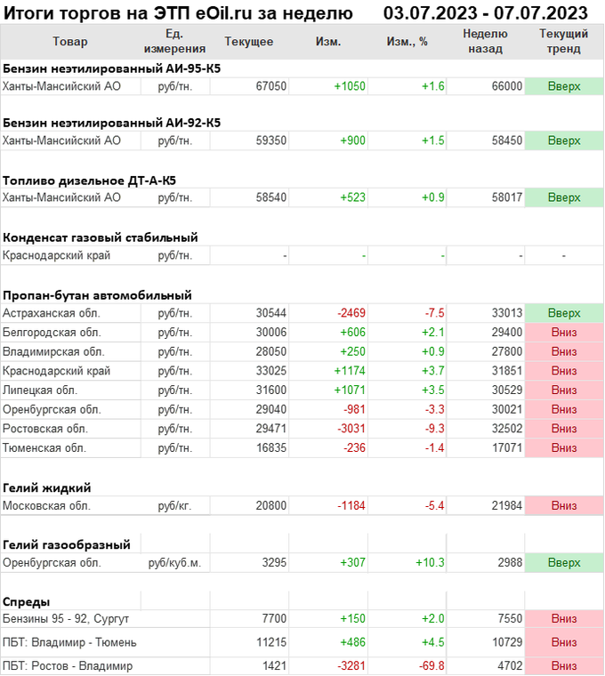 Итоги торгов на ЭТП eOil.ru с 3 по 7 июля 2023 года