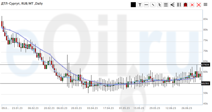 Цены на топливо дизельное ДТ-А-К5, базис поставки Ханты-Мансийский АО, выросли за неделю на 523 рубля до 58540 рублей за тонну.