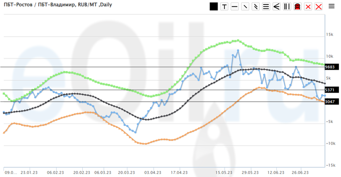 Разница цен между ПБТ на базисе Ростов и ПБТ на базисе Владимир.