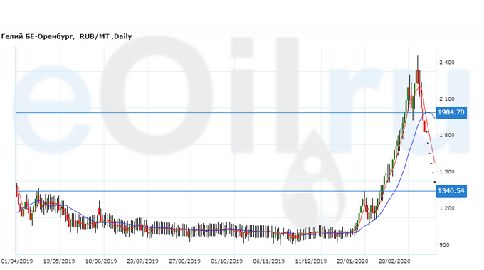 Цены на гелий газообразный, базис поставки Оренбургская область, не изменились за неделю, и составляют 1823 рубля за тонну.