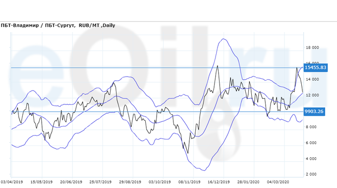 Разница цен между ПБТ на базисе Владимир и ПБТ на базисе Сургут (Ханты-Мансийский а.о.).