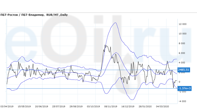 Разница цен между ПБТ на базисе Ростов и ПБТ на базисе Владимир.