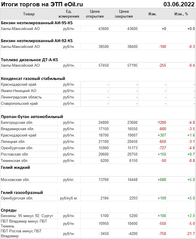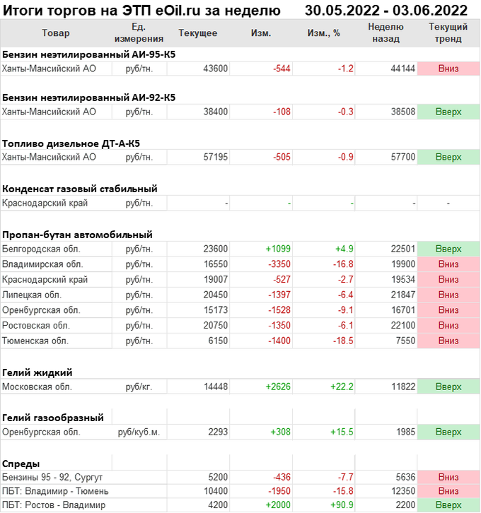 Итоги торгов на ЭТП eOil.ru с 30 мая по 3 июня 2022 года