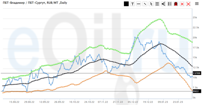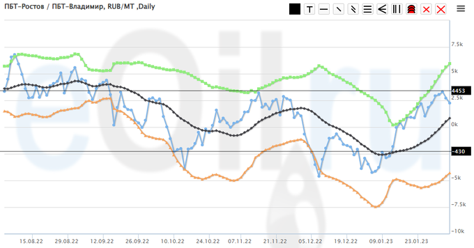 Разница цен между ПБТ на базисе Ростов и ПБТ на базисе Владимир.