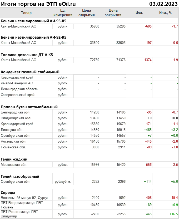 Итоги торгов на ЭТП eOil.ru с 30 января по 3 февраля 2023 года