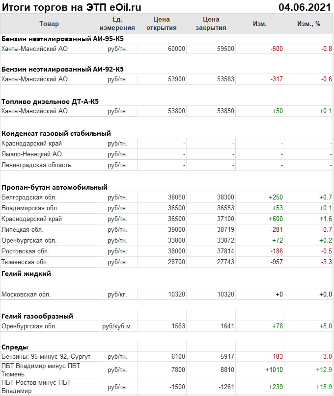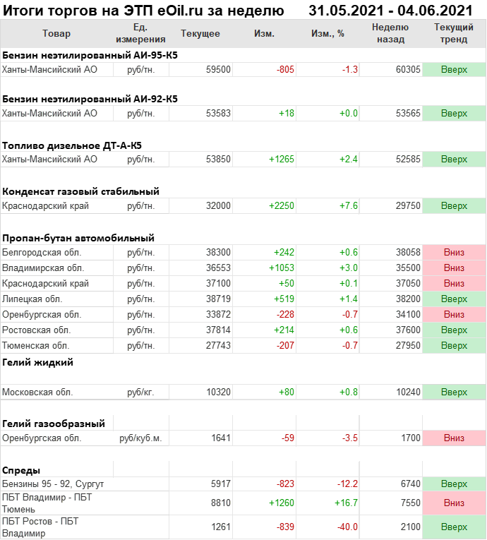 Итоги торгов на ЭТП eOil.ru с 31 мая по 4 июня 2021