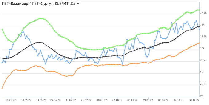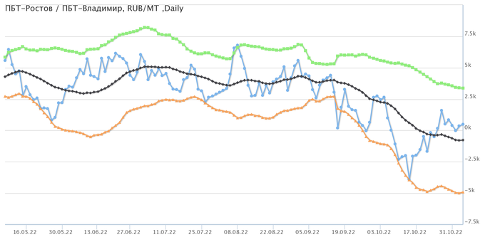 Разница цен между ПБТ на базисе Ростов и ПБТ на базисе Владимир.