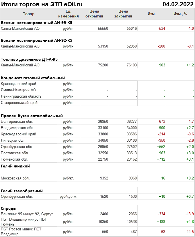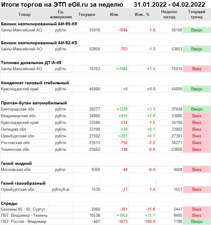Итоги торгов на ЭТП eOil.ru с 31 января по 4 февраля 2022