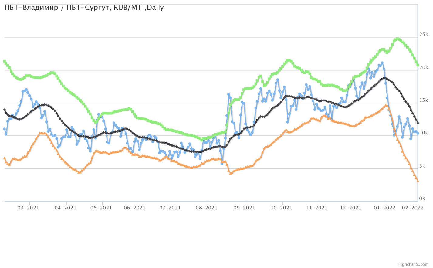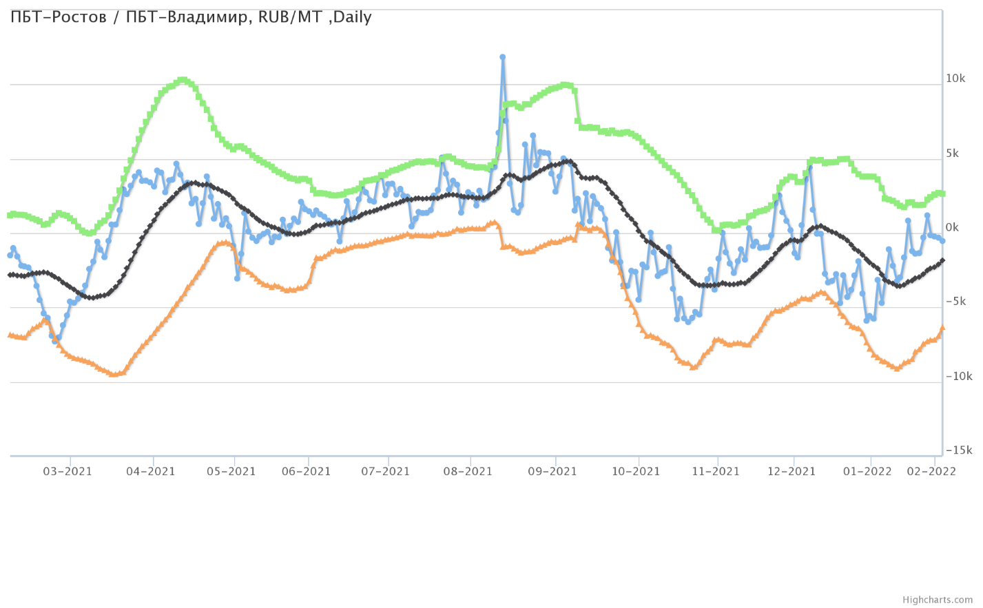 Разница цен между ПБТ на базисе Ростов и ПБТ на базисе Владимир.