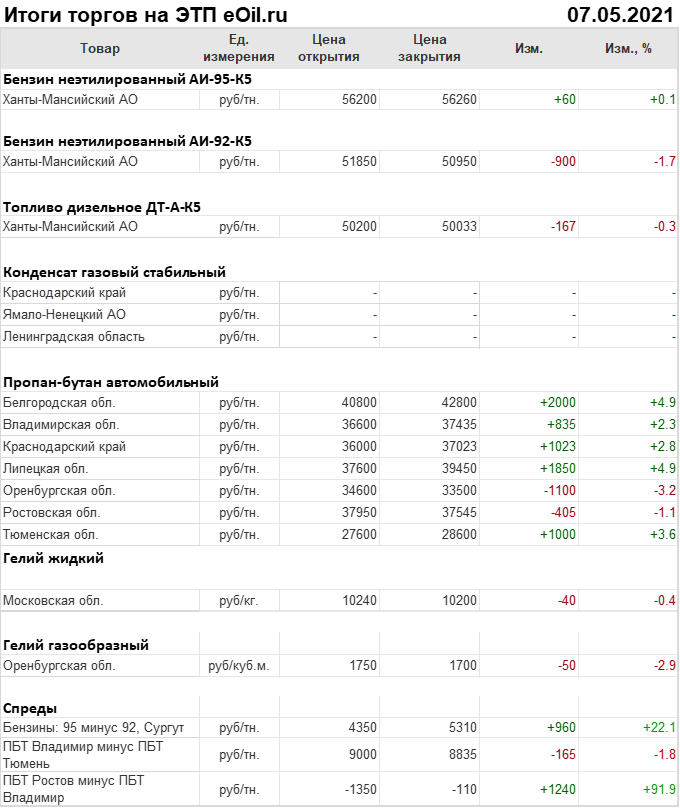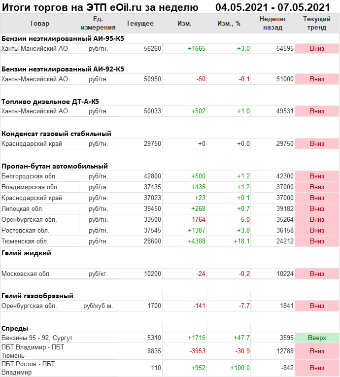 Итоги торгов на ЭТП eOil.ru с 4 по 7 мая 2021