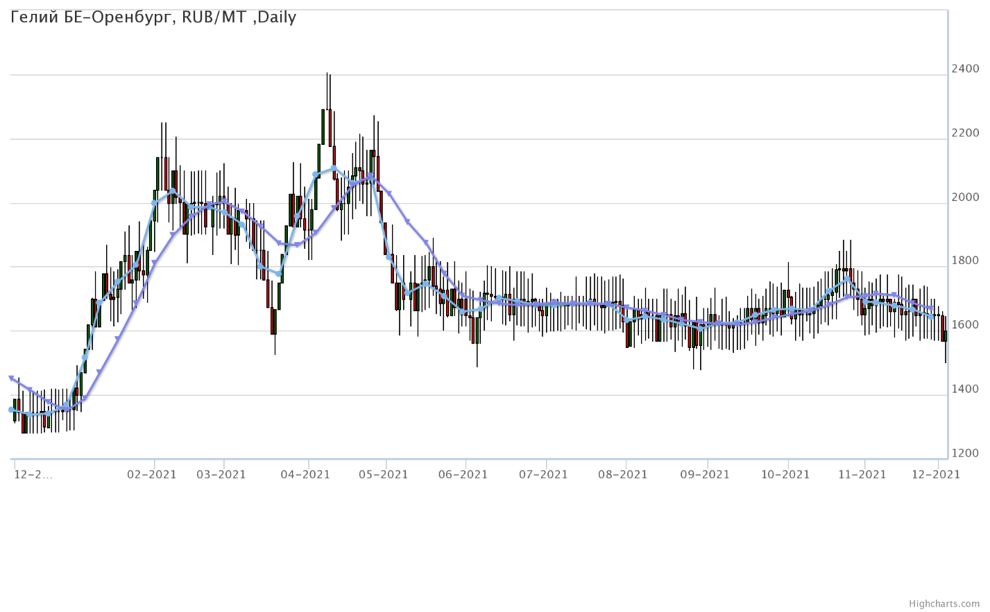 Цены на гелий газообразный, базис поставки Оренбургская область, выросли за неделю на 7 рублей до 1609 рублей за кубический метр.