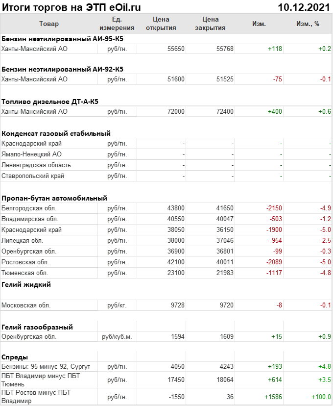 Итоги торгов на ЭТП eOil.ru с 6 по 10 декабря 2021