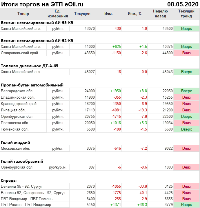 Итоги торгов на ЭТП eOil.ru с 6 по 8 мая 2020