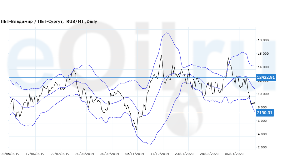Разница цен между ПБТ на базисе Владимир и ПБТ на базисе Сургут (Ханты-Мансийский а.о.).