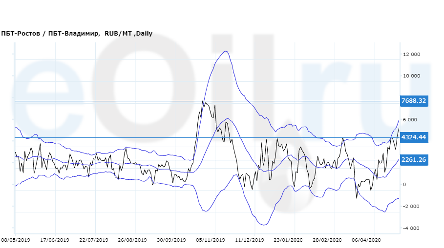 Разница цен между ПБТ на базисе Ростов и ПБТ на базисе Владимир.