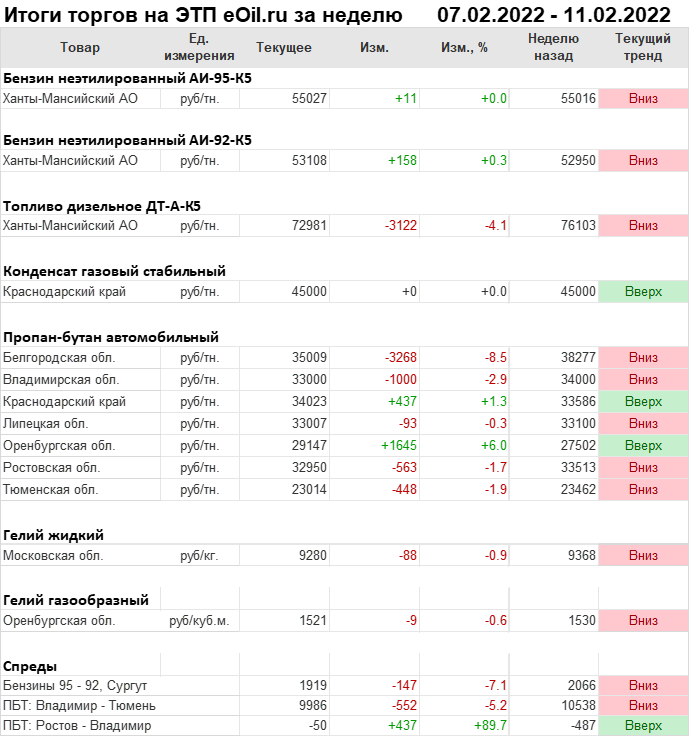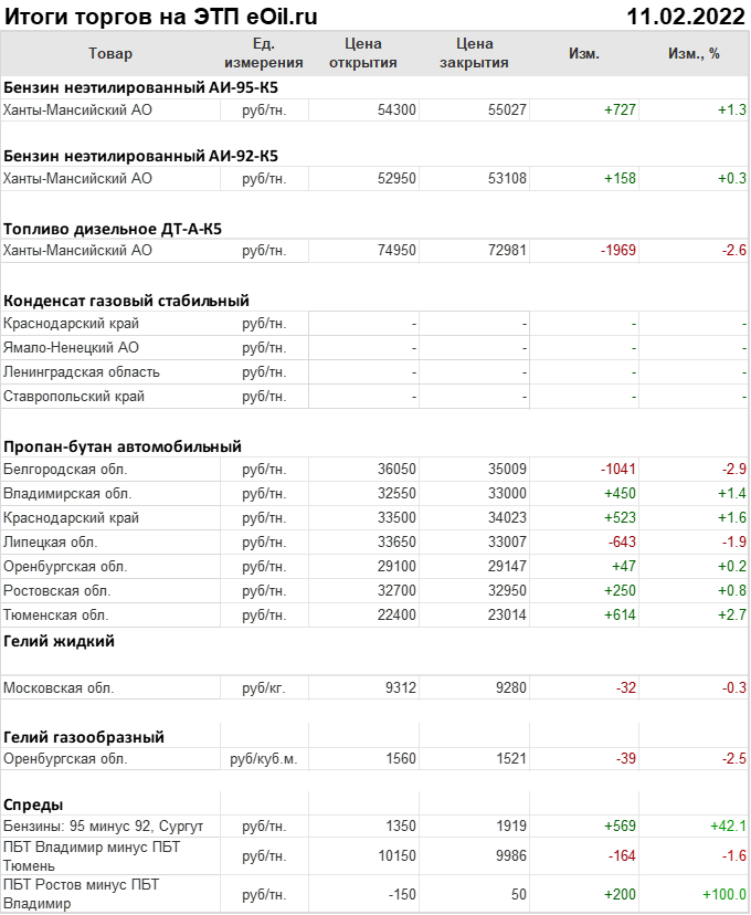 Итоги торгов на ЭТП eOil.ru с 7 по 11 февраля 2022 года