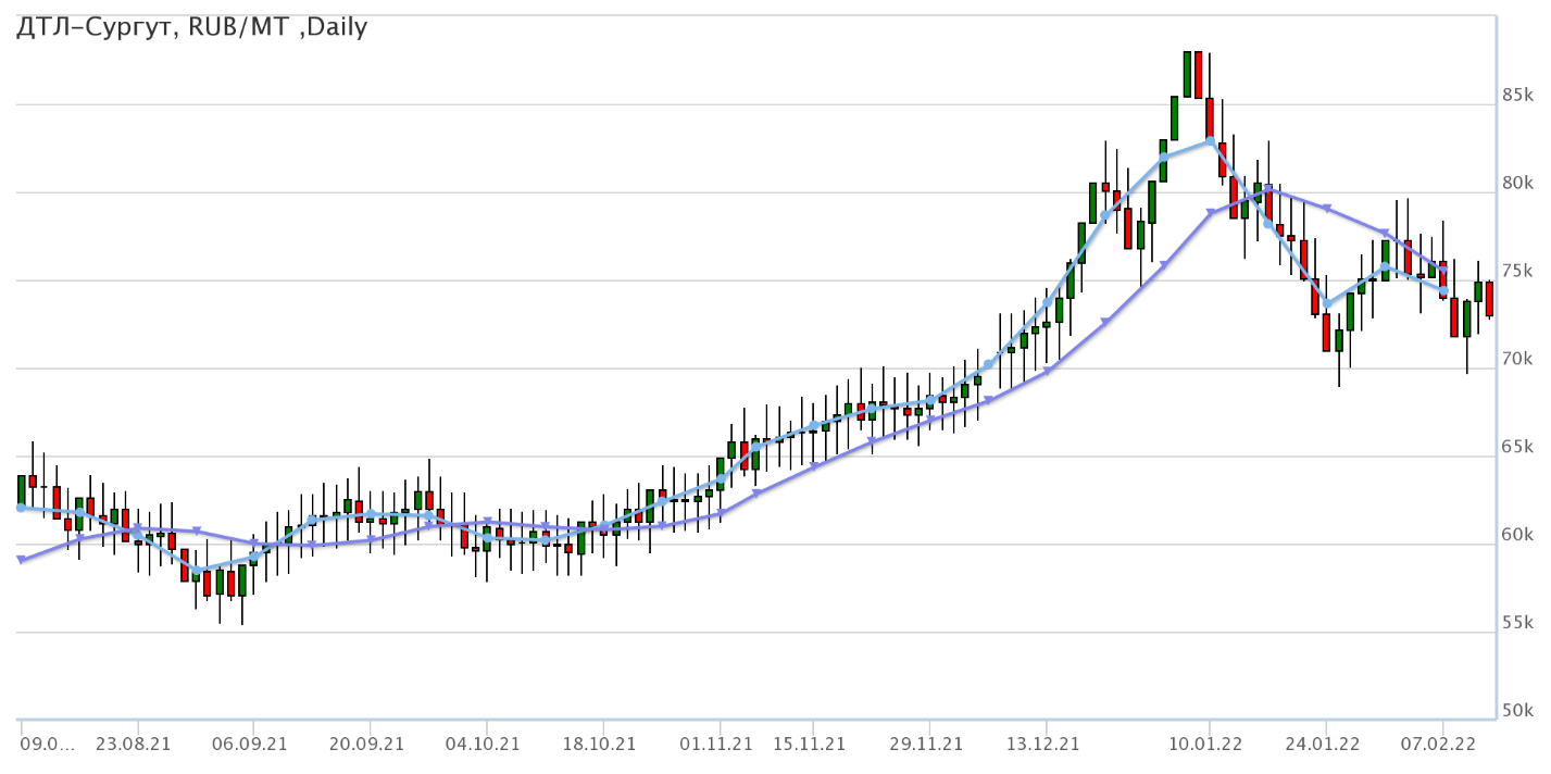 Цены на топливо дизельное ДТ-А-К5, базис поставки Ханты-Мансийский АО, снизились за неделю на 3122 рубля до 72981 рубля за тонну.