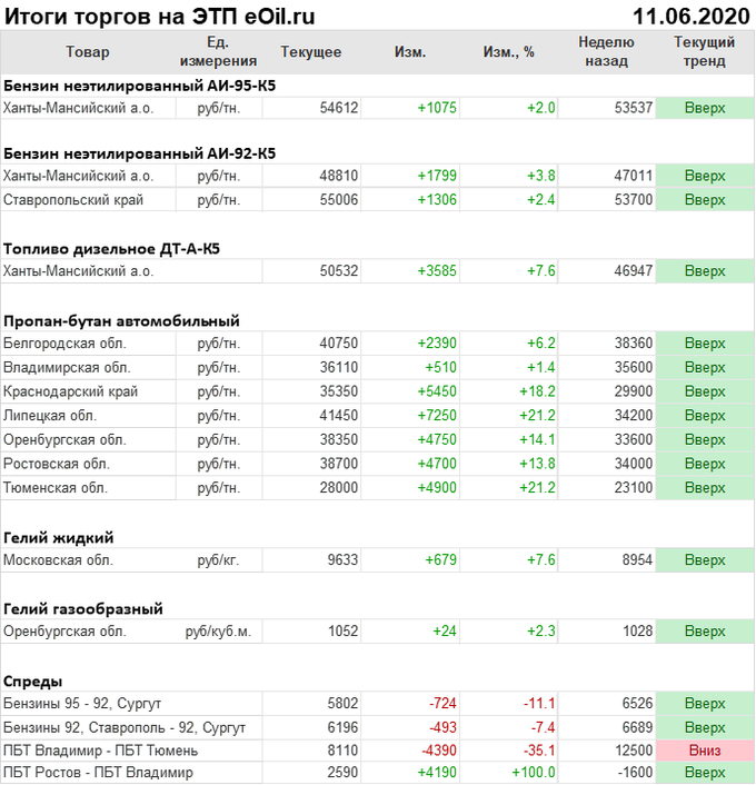 Итоги торгов на ЭТП eOil.ru с 8 по 11 июня 2020