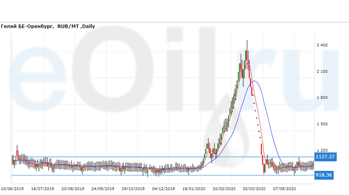 Цены на гелий газообразный, базис поставки Оренбургская область, выросли за неделю на 24 рубля до 1052 рублей за кубический метр.