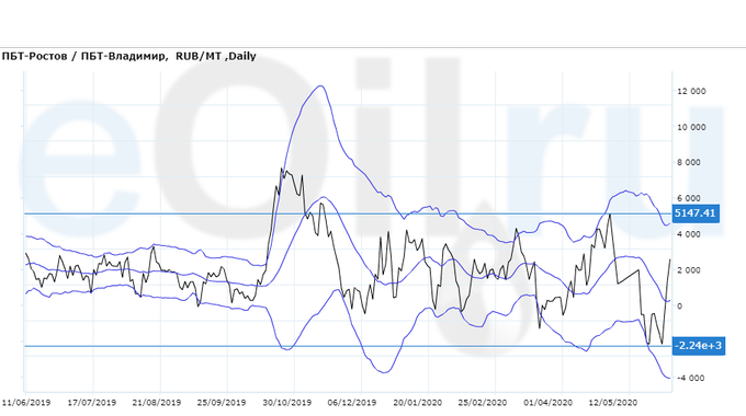 Разница цен между ПБТ на базисе Ростов и ПБТ на базисе Владимир.
