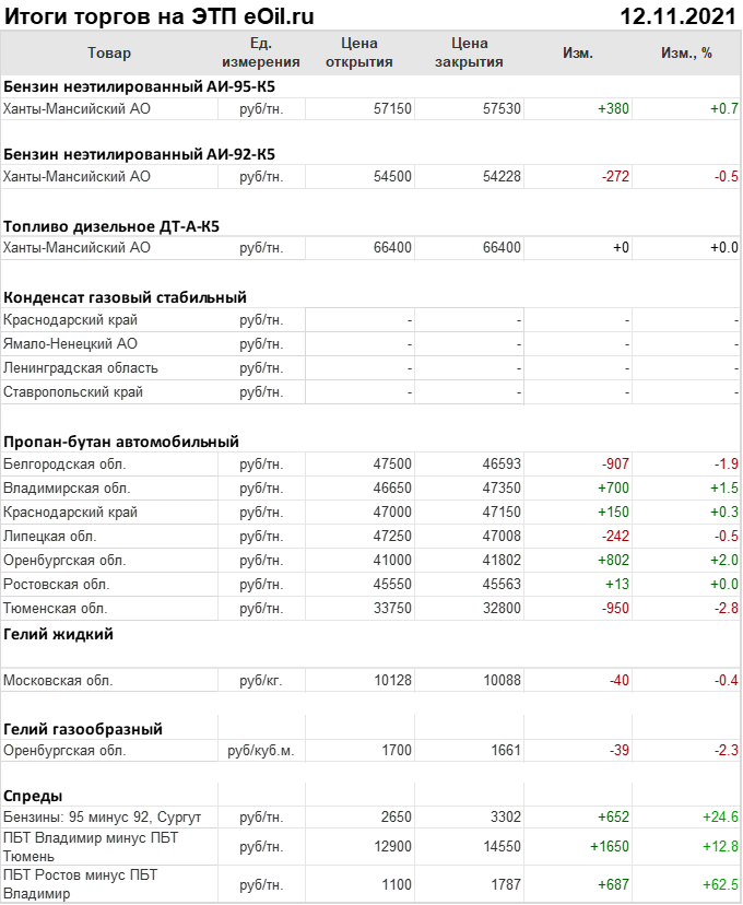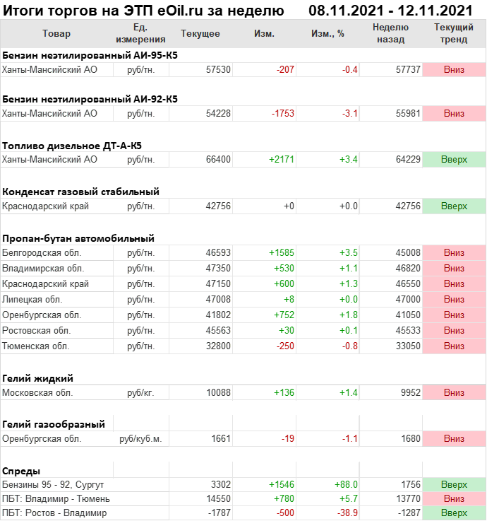 Итоги торгов на ЭТП eOil.ru с 8 по 12 ноября 2021 года