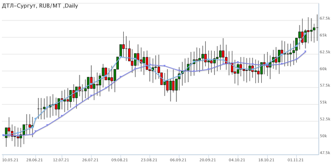 Цены на топливо дизельное ДТ-А-К5, базис поставки Ханты-Мансийский АО, выросли за неделю на 2171 рубль до 66400 рублей за тонну.