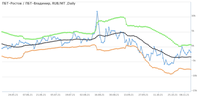 Разница цен между ПБТ на базисе Ростов и ПБТ на базисе Владимир.