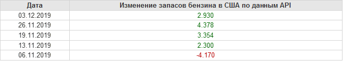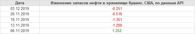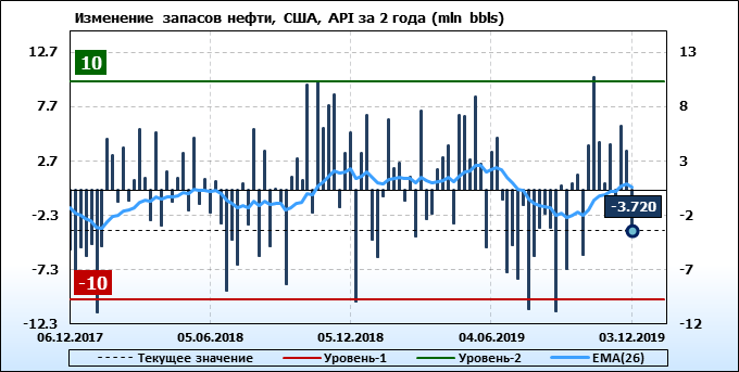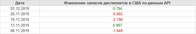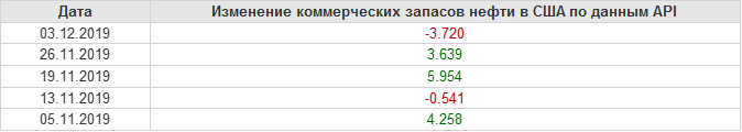 Изменение запасов нефти, США, API. Данные на 03.12.2019