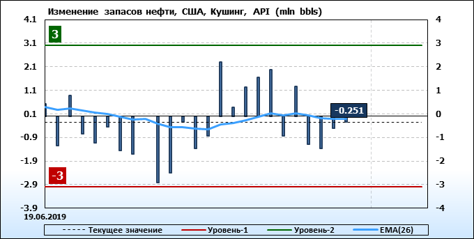 Запасы в хранилище Кушинг по данным института API упали на -0.251 млн. баррелей.