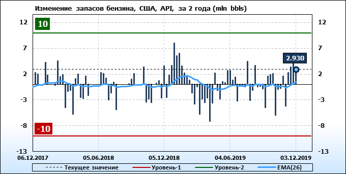 Запасы бензина в США по данным института API выросли на 2.93 млн. баррелей.