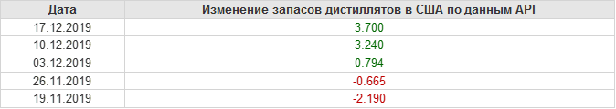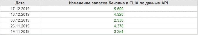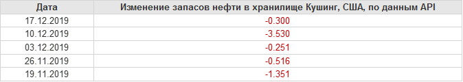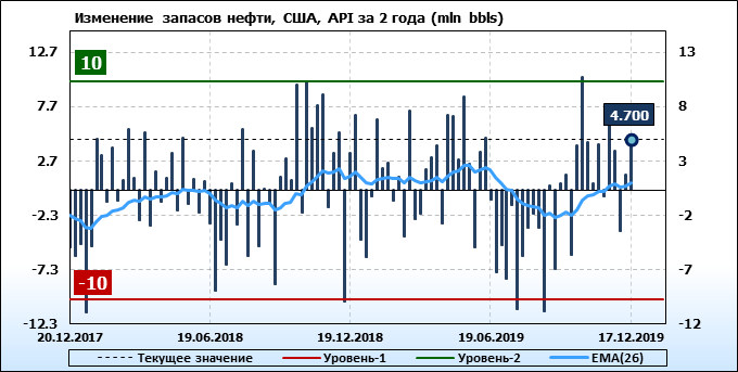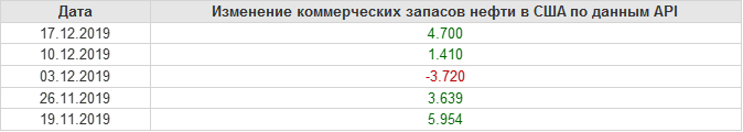 Изменение запасов нефти, США, API. Данные на 17.12.2019