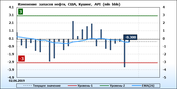 Запасы в хранилище Кушинг по данным института API упали на -0.3 млн. баррелей.