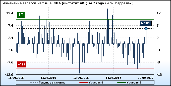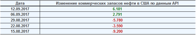 Изменение запасов нефти в США (институт API). Данные на 12.09.2017