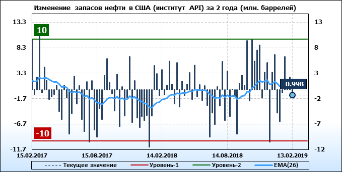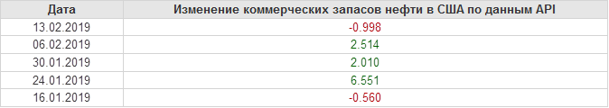 Изменение запасов нефти в США (институт API). Данные на 13.02.2019