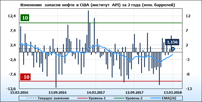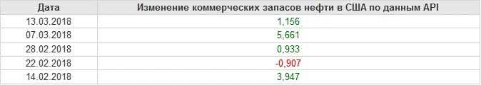 Изменение запасов нефти в США (институт API). Данные на 13.03.2018