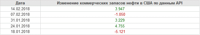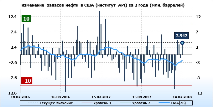 Изменение запасов нефти в США (институт API). Данные на 14.02.2018