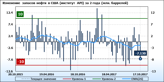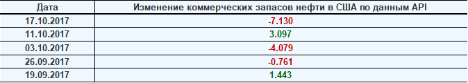 Изменение запасов нефти в США (институт API). Данные на 17.10.2017