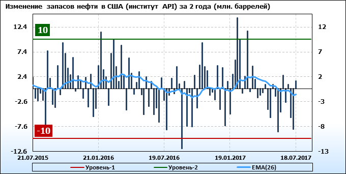 Изменение запасов нефти в США (институт API). Данные на 19.07.2017