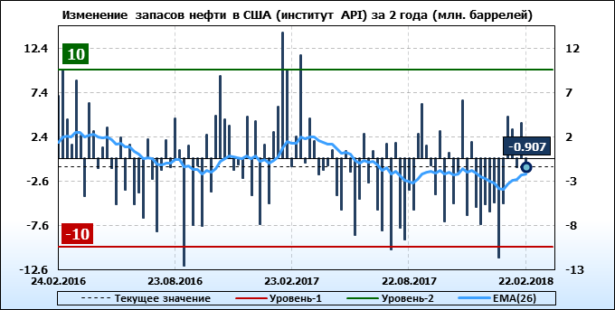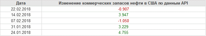 Изменение запасов нефти в США (институт API). Данные на 22.02.2018