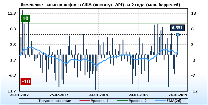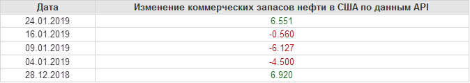Изменение запасов нефти в США (институт API). Данные на 24.01.2019