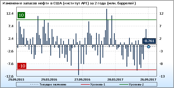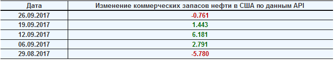 Изменение запасов нефти в США (институт API). Данные на 26.09.2017