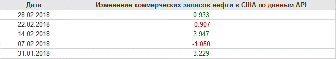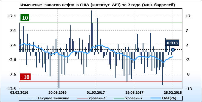 Изменение запасов нефти в США (институт API). Данные на 28.02.2018
