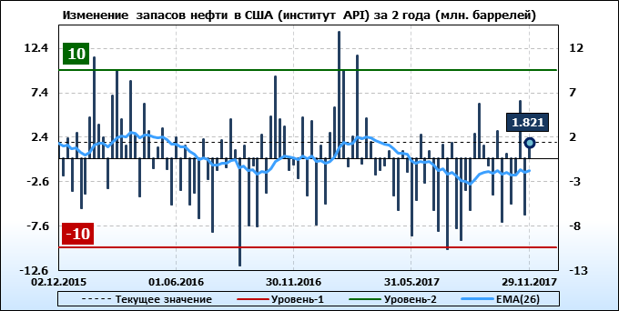 Изменение запасов нефти в США (институт API). Данные на 29.11.2017