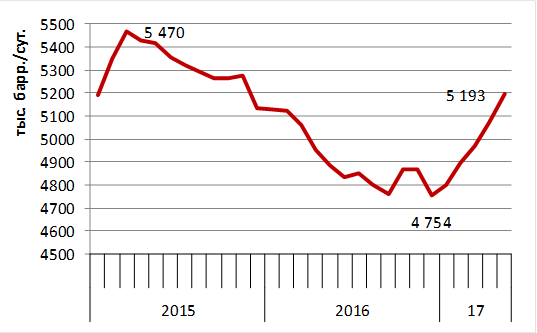 Необходимо, как выяснилось, внести ясность: добыча сланцевой нефти в США составляет не более 5, а менее 4,5 млн барр. в сутки.