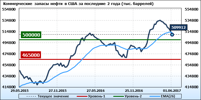Коммерческие запасы нефти в США. Данные на 01.06.2017