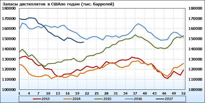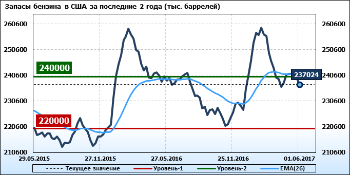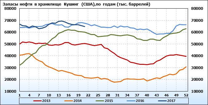 Коммерческие запасы нефти в США. Данные на 1.06.2017. Подробно