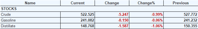 Коммерческие запасы нефти в США  упали на -5,247  до 522,525 млн. баррелей. Запасы бензина  упали на 0,150  до 241,082 млн. баррелей. Запасы дистиллятов упали на -1,587  до 148,768 млн. баррелей.