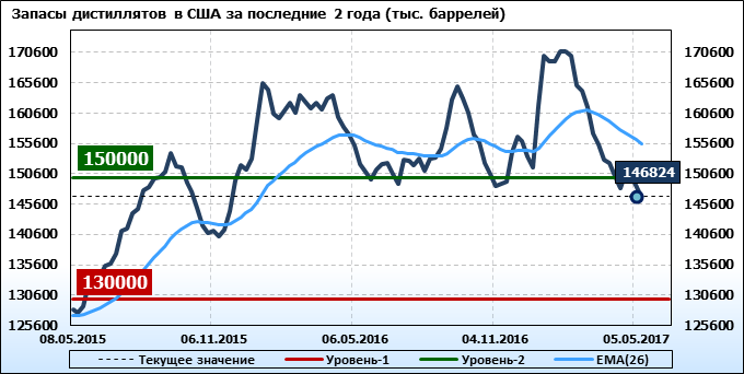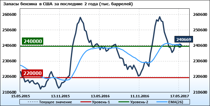 Коммерческие запасы нефти в США. Данные на 17.05.2017. Подробно